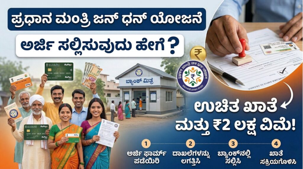 👉 ಪ್ರಧಾನ ಮಂತ್ರಿ ಜನ ಧನ್ ಯೋಜನೆ 2026: ₹0 ಖಾತೆ + ₹2 ಲಕ್ಷ ವಿಮೆ! ಈಗಲೇ ಅಪ್ಲೈ ಮಾಡುವ Complete Guide 📢 …