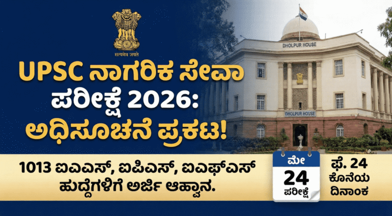 🟥 UPSC ನಾಗರಿಕ ಸೇವಾ ಪರೀಕ್ಷೆ 2026: 1013 ಹುದ್ದೆಗಳ ಭರ್ತಿಗೆ ಅಧಿಕೃತ ಅಧಿಸೂಚನೆ ಪ್ರಕಟ – ಅರ್ಜಿ ಪ್ರಕ್ರಿಯೆ, ಅರ್ಹತೆ, ಸಿಲೆಬಸ್, ಆಯ್ಕೆ ವಿಧಾನ ಸಂಪೂರ್ಣ …