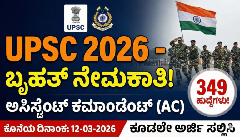 🔥 UPSC ಕಮಾಂಡೆಂಟ್ ನೇಮಕಾತಿ 2026: 349 ಹುದ್ದೆಗಳು! ಪದವೀಧರರಿಗೆ ಭರ್ಜರಿ ಅವಕಾಶ – ಸಂಪೂರ್ಣ ಮಾಹಿತಿ ಇಲ್ಲಿದೆ ದೇಶ ಸೇವೆ ಮಾಡುವ ಕನಸು ನಿಮ್ಮದಾ? ಯೂನಿಫಾರ್ಮ್ …