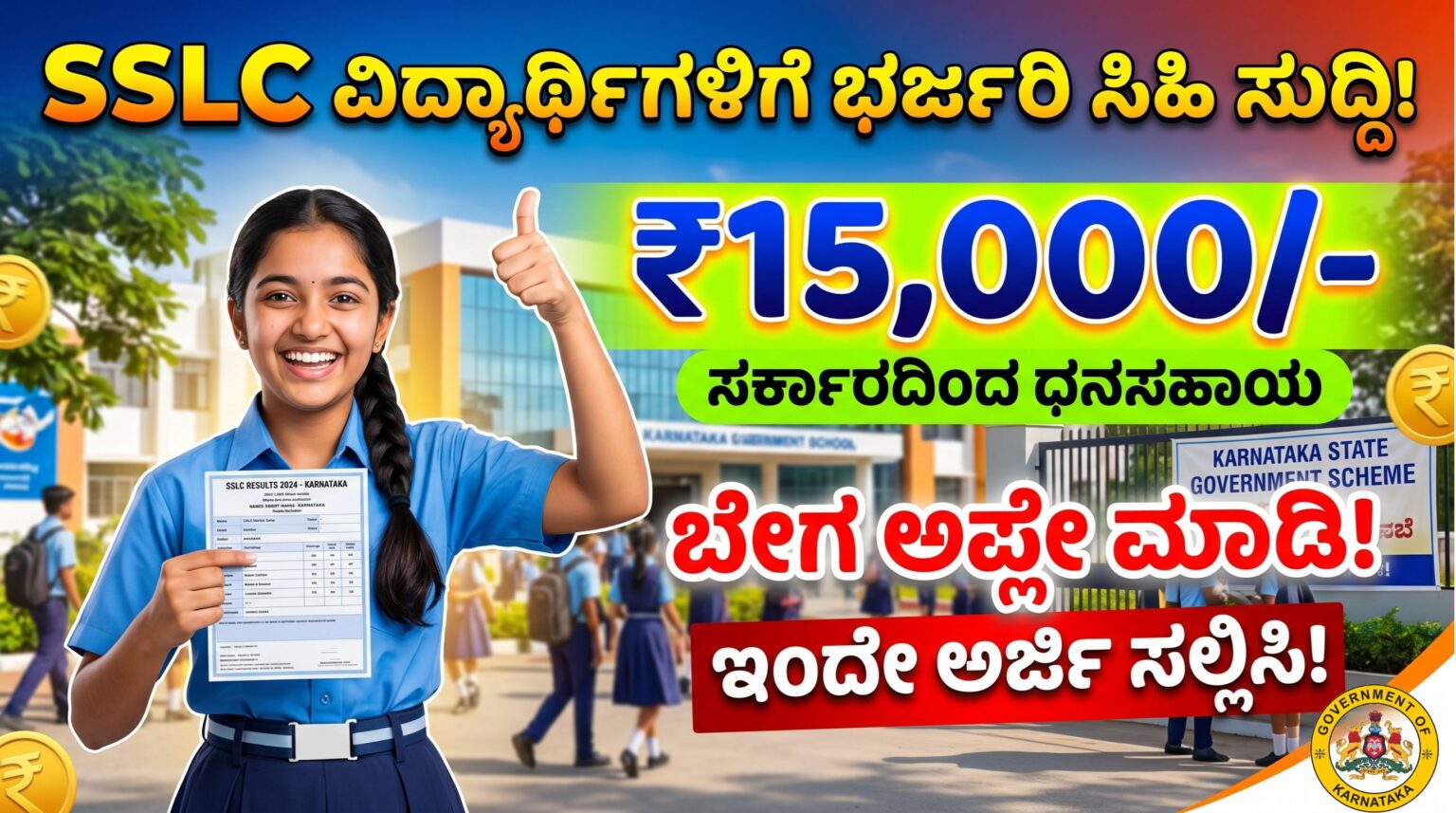 🎓 SSLC ಪಾಸ್ ಮಾಡಿದವರಿಗೆ ₹15,000! ವಿದ್ಯಾರ್ಥಿಗಳಿಗೆ ಭರ್ಜರಿ ಗಿಫ್ಟ್ 💥
