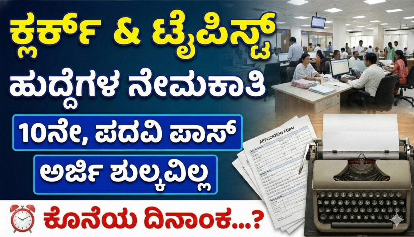 ✔️ ಕ್ಲರ್ಕ್ & ಟೈಪಿಸ್ಟ್ ಹುದ್ದೆಗೆ ಪದವಿ ಪೂರ್ಣಗೊಳಿಸಿರಬೇಕು